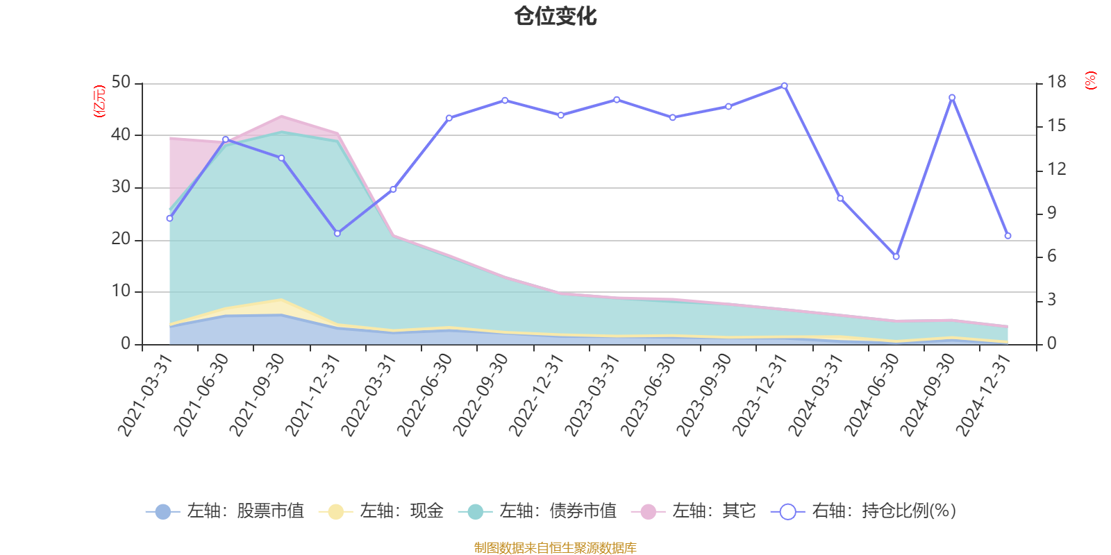 据定期报告数据统计,近三年平均股票仓位为13.86%,同类平均为18.69%。2023年末基金达到17.83%的最高仓位,2024年上半年末最低,为6.06%。